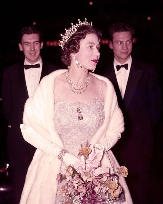 (右)1962年,伊丽莎白二世女王佩戴了“奶奶的薯片”胸针