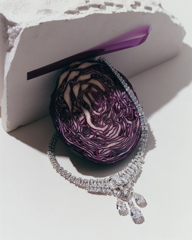 在巴黎高级珠宝展上,法国高级珠宝品牌梵克雅宝 (Van Cleef & Arpels) 以文艺复兴时期女性所穿的高领时装为灵感,创作了一款曲线优美的天然钻石项链。这条项链看起来就像一道流光,垂坠着的天然钻石能够随身体的动作摇曳颤动。这种设计既经典又现代,也能很巧妙的突出线条张力和灵动感。