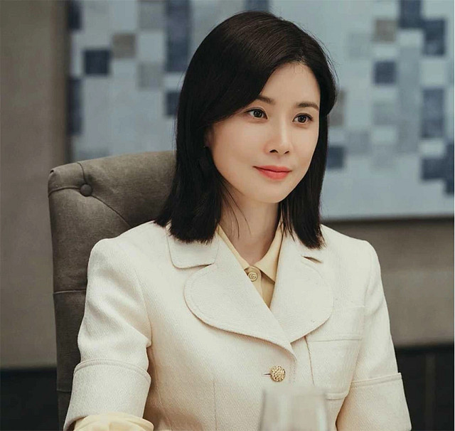 金瑞亨所扮演的郑书贤是财阀出身的大媳妇,外表虽冷傲,但天生自带贵族气质,她独爱工业风和几何轮廓耳饰,沉稳干练、雷厉风行的气质一览无余。
